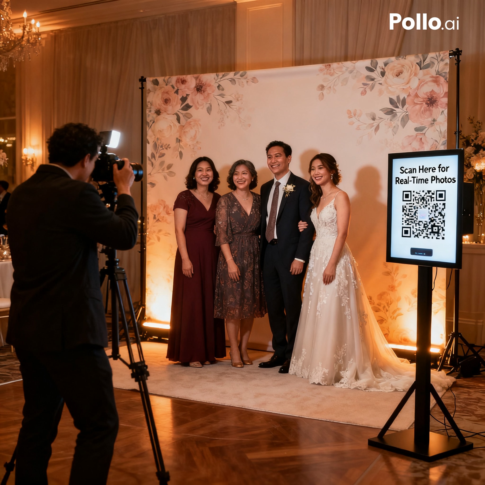 Shooting photo premium en mariage ou événement professionnel. Récupération des photos directement sur place — vos invités repartent avec leurs images le jour même.